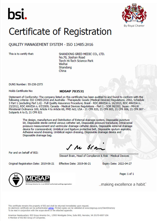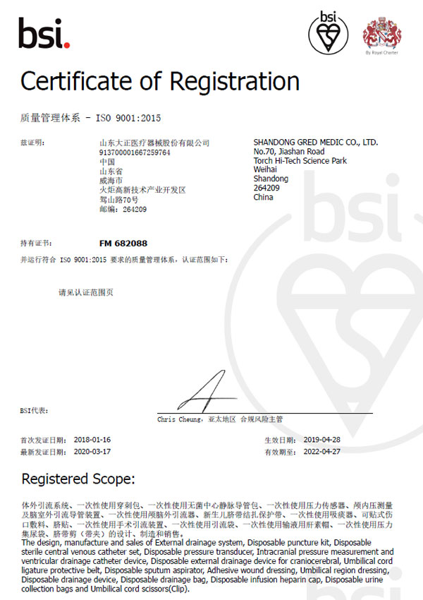 ISO 13485質量管理體系證書